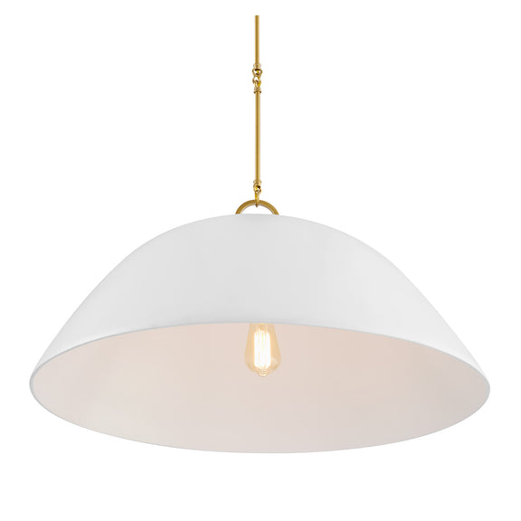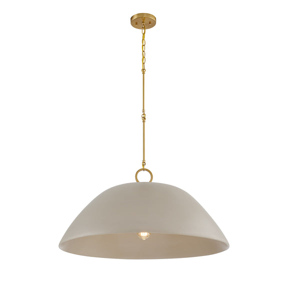 The Savoy House Alta 1-light pendant lets you illuminate your home with natural beauty. Its shade is crafted from spun bamboo and wears a textured Concrete finish that pairs nicely with the Warm Brass hardware. Whether used solo or in groupings, Alta is sure to stand in the spotlight! It is 33" in height and 30" in width. Uses one standard size bulb of up to 60 watts. Bulb not included. This fixture is supplied with 120" of hanging chain.