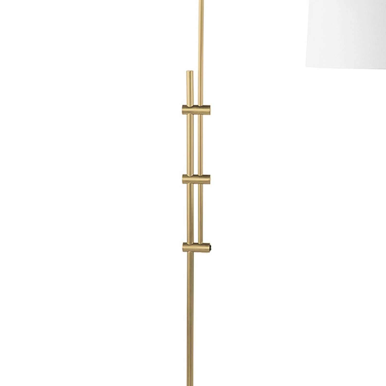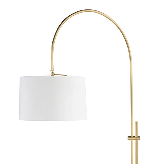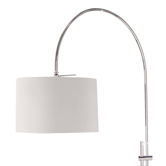 The juxtaposition of a metallic, side-to-side adjustable base with a fabric shade gives this arc floor lamp a modern aesthetic—seamlessly fusing fashion and function.