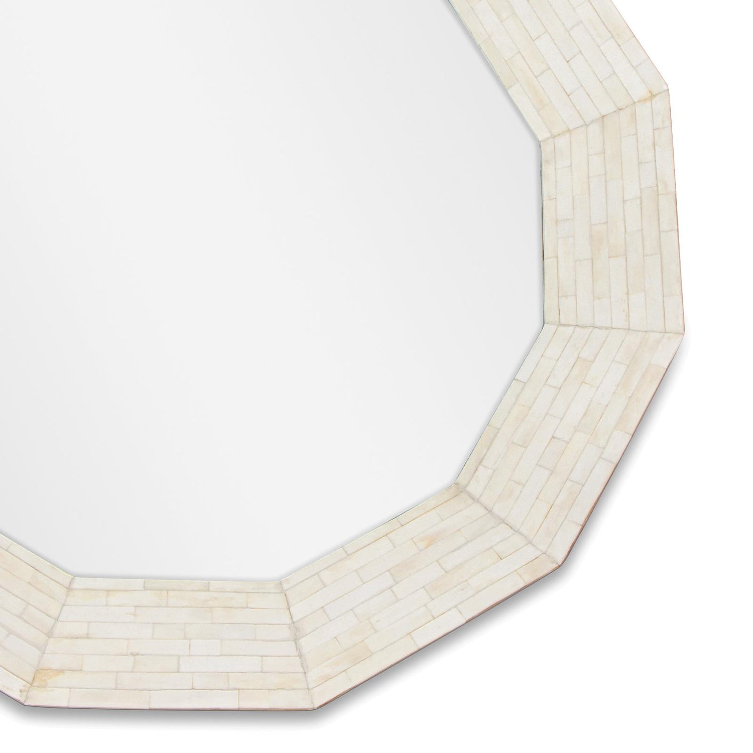 Ares has it all. The exquisite palette of natural bone, honed by skilled artisans, provides impeccable style and unique beauty in this handcrafted mosaic mirror design. As natural materials allow minor variations, no two are exactly alike.