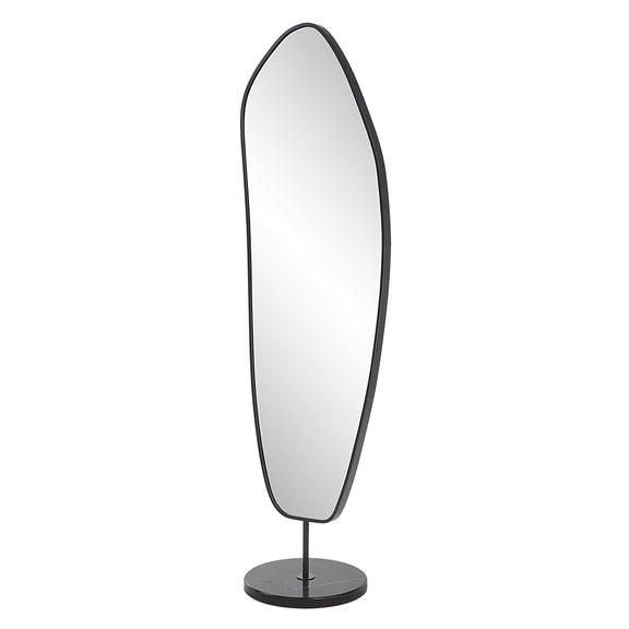 Transform any living space with the sleek and modern Arlon 70 Tall Irregular Mirror in Matte Black. The high-quality and durable cast iron frame ensures that this mirror will stand the test of time, while its unique abstract shape adds intrigue and flair to any room. This luxurious mirror features a sophisticated and sleek design that speaks to your aesthetic taste. The use of matte black finishing adds a touch of elegance to this already impressive item. Designed for easy installation and vertical hanging, the Arlon 70 is optimized for effortless display. Elevate your home decor with this eye-catching and functional piece.