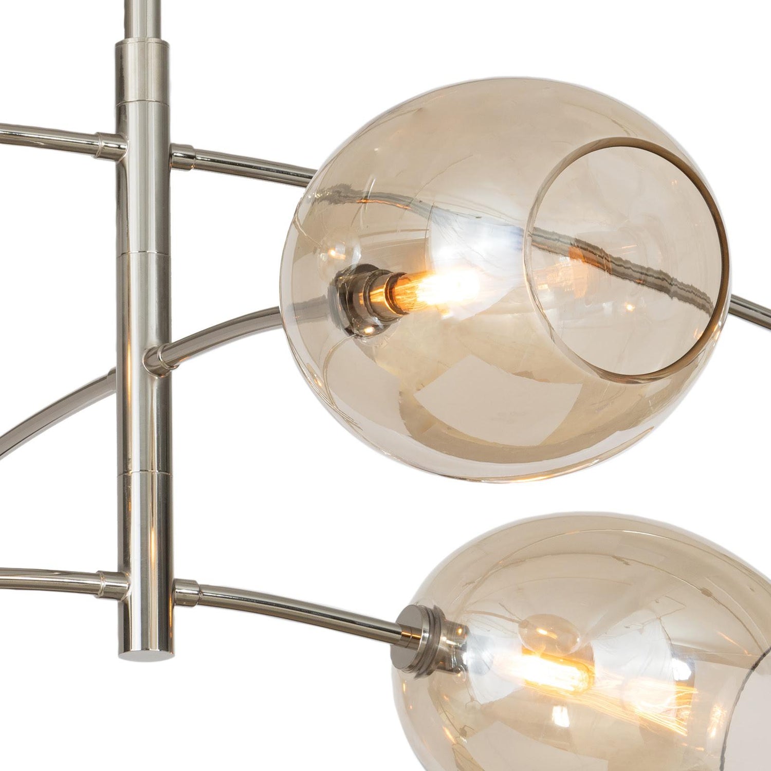 Artemis blends sleek design with the allure of artisan-crafted glass. Its open-ended Champagne glass globes add moody sophistication, creating a captivating and unique ambiance. Inspired by the concept of a mobile, Artemis features gracefully balanced arches in a polished nickel finish, making it both a functional light source and a stunning piece of modern art.