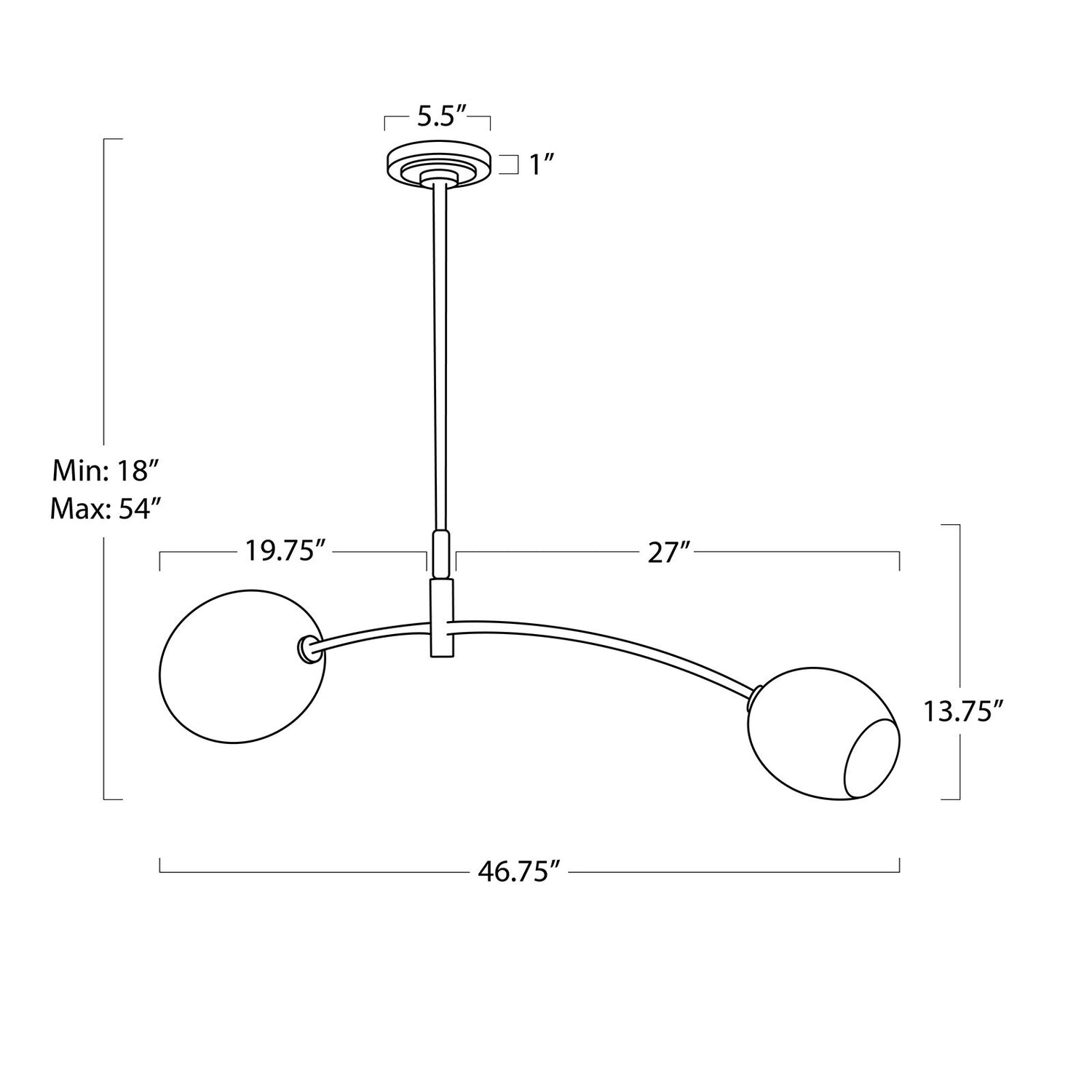 The Artemis Double Pendant masterfully balances simplicity with artisanal craftsmanship, featuring open-ended, alabaster like glass globes elegantly positioned at each end of its mobile-inspired, arched arm in natural brass finish. This striking fixture exudes a modern vibe, making it a standout addition to any space.