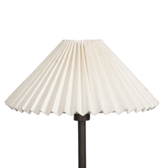 French inspiration courses this four-arm chandelier, as curved bronzed arms connect at a central ball detail. Cream, accordion-pleated linen shades allow for a softened, more ambient light, while a double hook lets you hang in a wide range of spaces, including slanted ceilings. T6 bulbs recommended.