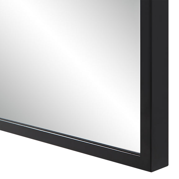 Enhance the stylishness of your home decor with Balina 72" Tall Rectangular Arch Mirror. Crafted with a high-quality and durable cast iron frame, this mirror is designed to last a lifetime. Its sophisticated arch shape evokes timeless and elegant charm, making it a standout piece in any room. The D-Ring hanging system ensures easy installation, while its optimized design allows for effortless horizontal hanging. With its sleek matte black finish, this mirror is the perfect addition to any modern home. This mirror is the perfect addition to any home for creating a chic and minimalist look.