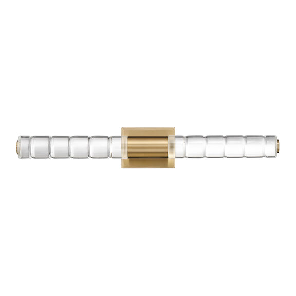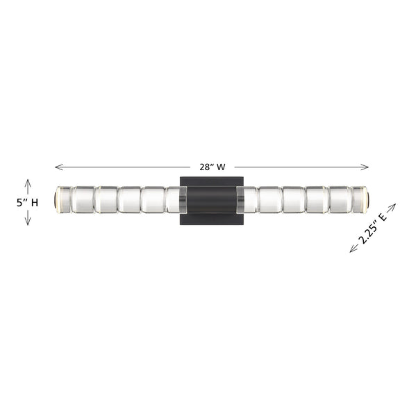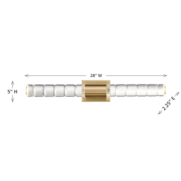 Highly textured batons of K9 crystal draw the eye and shine brightly in the Savoy House Beale LED wall sconce. The crystal takes center stage, held in an understated structure that is decorated in a chic Noble Brass finish. This edgy style is a perfect way to illuminate a bath vanity, piece of art, hallway, living room, bedside table or any other space you can imagine! Beale is 5" in height, 28" in width and extends 4.5" from the wall. It uses integrated LED light sources.