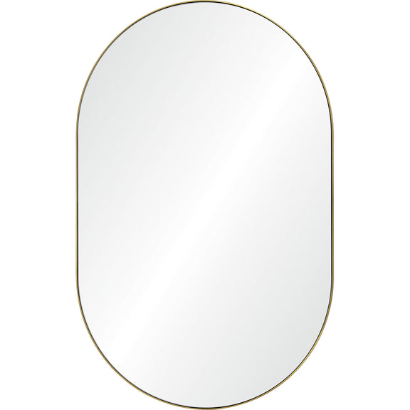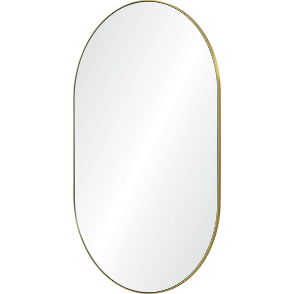 Effortlessly chic, this oval mirror serves as the final elevating touch in the bedroom, or entryway. With an expansive size of 26 by 40 inches, it fills a wall with radiant reflection. The thin satin brass iron frame proves even minimal details can make a lasting interior impression.