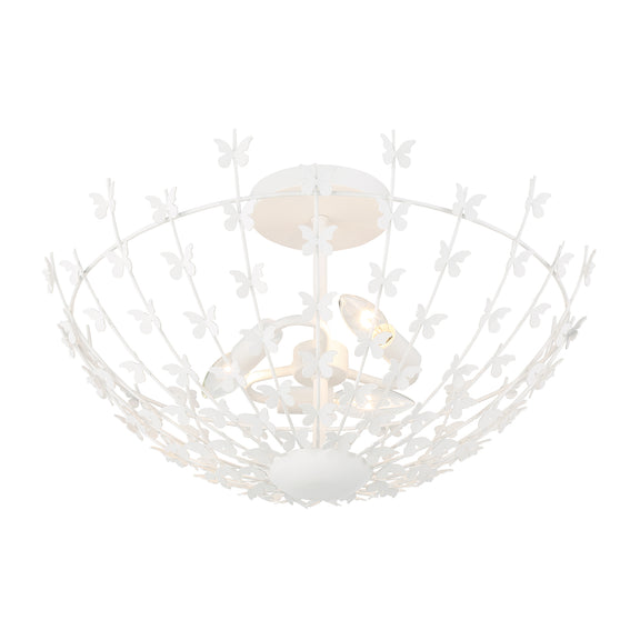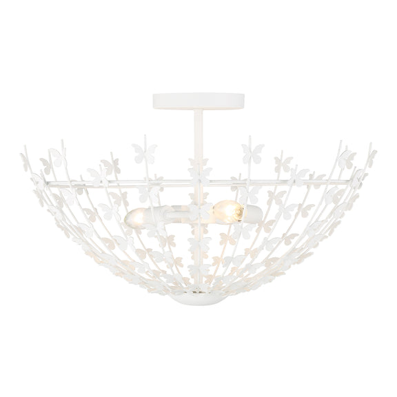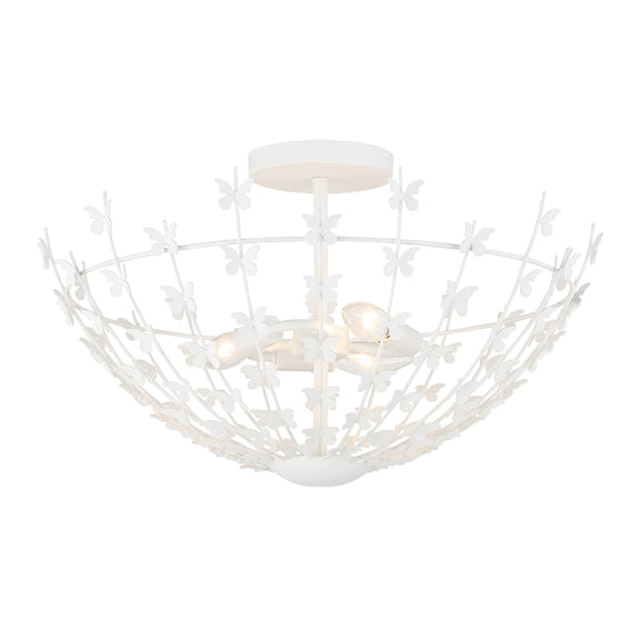 Add a little magic to any room with the whimsical Savoy House Birch 3-light ceiling semi-flush mount, which features an open bowl-shaped structure adorned with rows of lovely metal butterflies finished in Bisque White. It is 11" in height and 20" in width. Uses three candelabra size bulbs of up to 60 watts per bulb. Bulbs are not included.