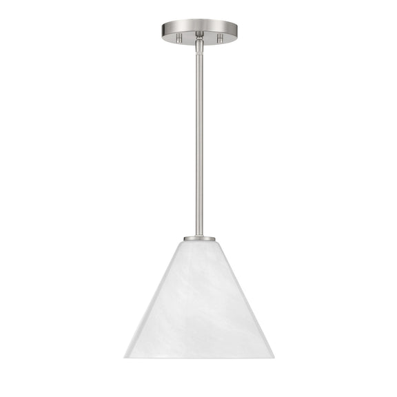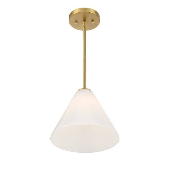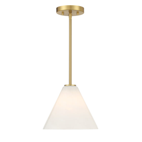 This Savoy House Blair 1-light mini pendant is oh so versatile! It can be installed as a hanging pendant or as a ceiling semi-flush mount, making it perfect for meeting every lighting need. It is finished in Warm Brass and holds a shade of spectacularly swirling strie glass. Blair is 10" in width and has an adjustable height ranging from 7.75" to 37.25". Uses one standard size bulb of up to 60 watts. Bulb not included. Comes with three 9.5" downrods.