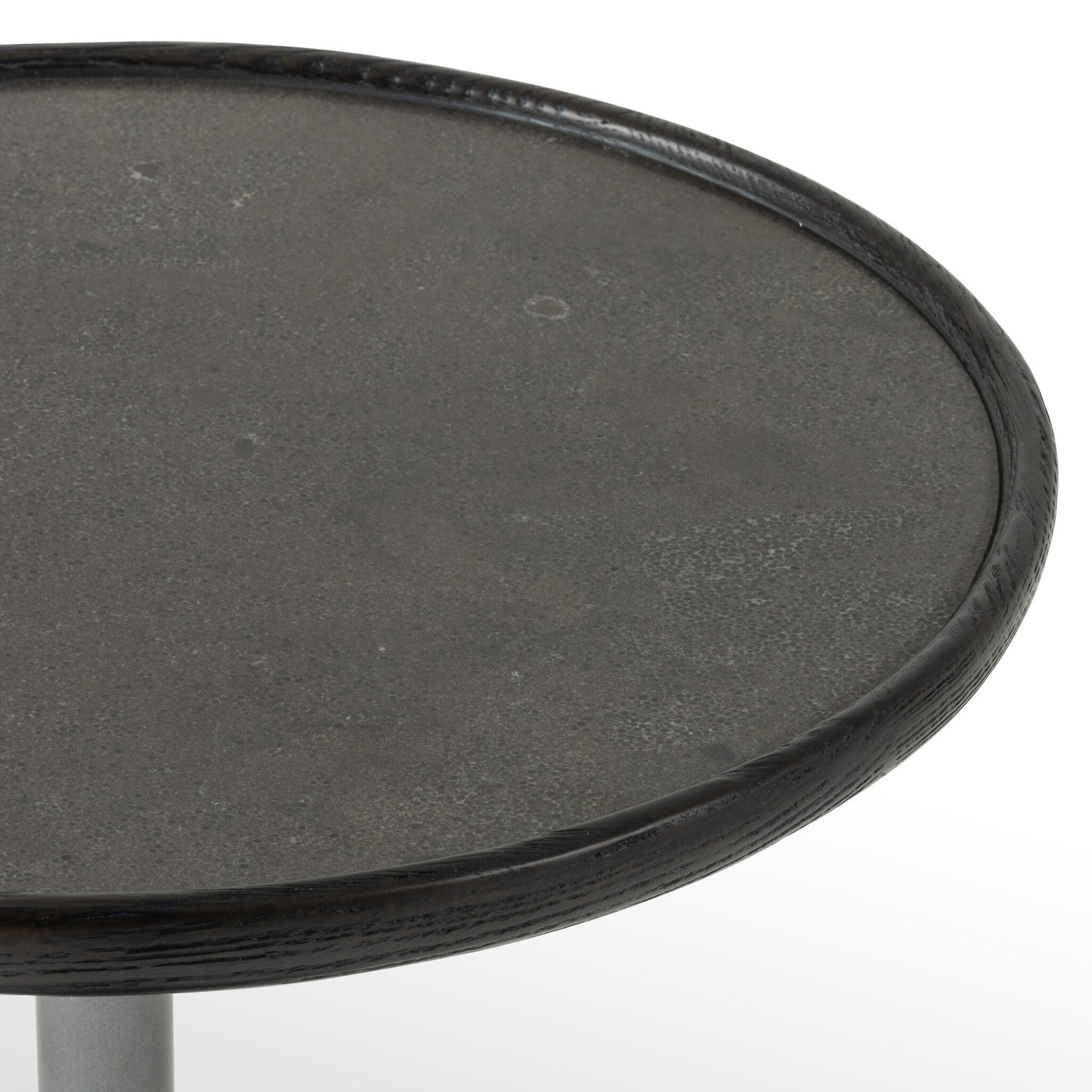 Mix in something modern. A shapely, overscaled oak base tapers into a slim iron neck, with a rounded bluestone top for a sophisticated finishing touch. White mineral lines and subtle color, texture and pattern variations are to be expected and speak to each stone's individual nature.