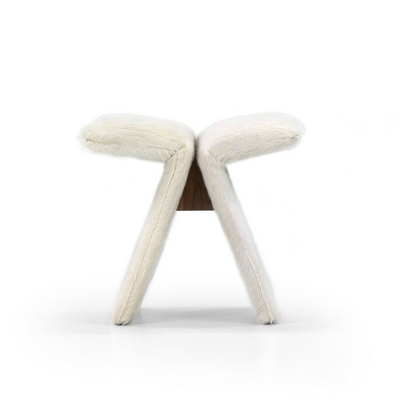 The Butterfly Occasional Stools enchant with their gracefully curved, V-shaped design, plush cushioning, wooden stretcher accent, and sleek silhouette.