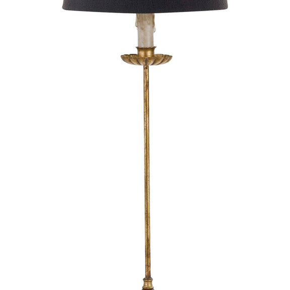 Add a touch of elegant style to your home with the Clove Stem Buffet Lamp. With a dramatic base finished in antiqued gold, this table lamp brings a touch of sophistication to any decor. A black linen shade completes the refined look.