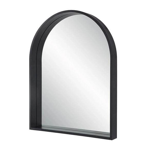 Enhance the appeal of any room with the exquisite Cove 46" Tall Arch Rectangular Mirror in Matte black. Crafted with a high-quality and durable cast aluminum frame, this mirror reflects a sophisticated arch shape that adds timeless and elegant charm to any space. With a D-Ring hanging system, installation becomes conveniently hassle-free. Optimized for easy vertical hanging, it offers effortless display.