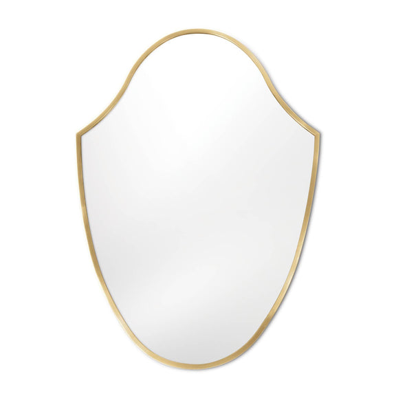 Like a family crest, this striking mirror has a traditional and timeless vignette. Create a statement above an entryway table, chest of drawers, or on a wall needing interest. This classic, solid steel frame finished in warm Natural brass will add a touch of elegance to your space.