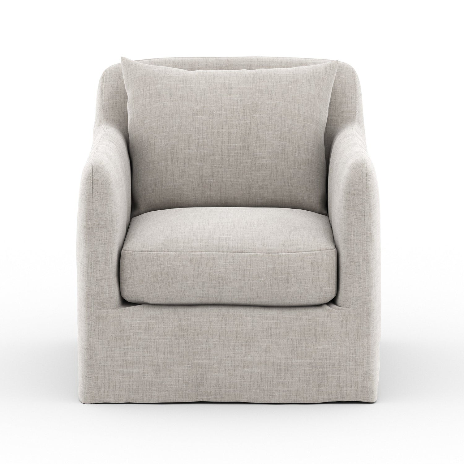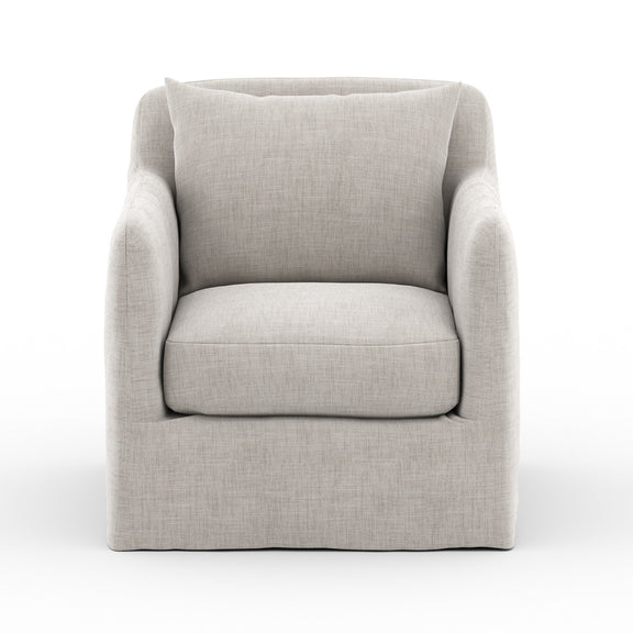 A fresh, outdoor-friendly spin on the swivel chair. Removable stone grey slipcover meets style with sensibility. Great in pairs. Cover or store inside during inclement weather and when not in use.