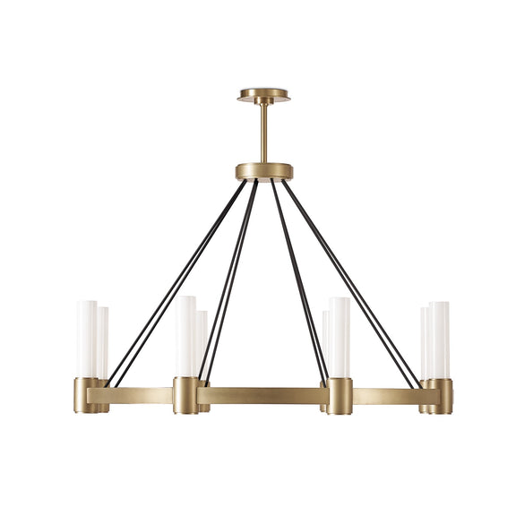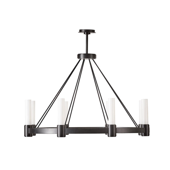 With quiet strength, the Dixon Chandelier confidently holds an octet of opal white glass pillars aloft in its arms. Each cylinder is open at both ends to shine light above and below. Simple and stunning in a dining room but an equally bold choice in your kitchen.