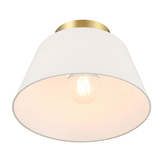 Use this 3-light ceiling semi-flush mount to freshen up any room. The elegant white linen shade provides a crisp and classic look that works beautifully with any decor and style. The Natural Brass finish is wonderfully versatile. 7.5" height, 12" width. Uses 1 standard size bulb of up to 60 watts. Bulb not included.