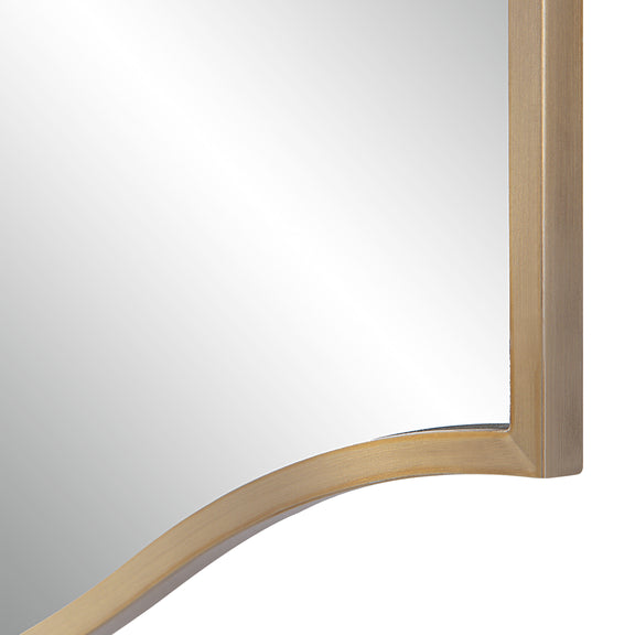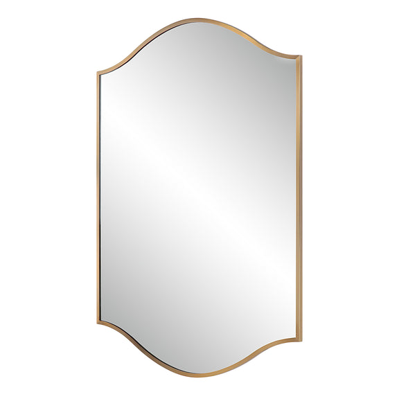 The Florianne 36" Tall Rectangular Arch Mirror in Champagne is a stunning addition to any room. Its unique design features a tall rectangular shape with an elegant arch at the top, making it a standout piece in any space. Expertly crafted with high-quality materials, this mirror is built to last and is sure to make a statement. Its large size also provides functional use beyond just a stylish accent piece, allowing for full-length views when getting ready for the day or night. Add the Florianne 36" Tall Rectangular Arch Mirror to your home today for a touch of luxury that won't go unnoticed.