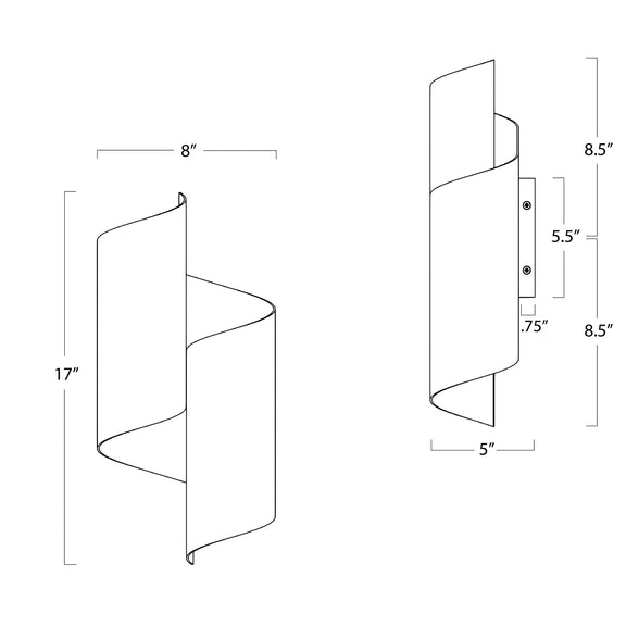 The Folio Sconce's exterior is uniquely contrasted by its almost paper-like metal that has been expertly formed to achieve an effortless curved shape. Contrasting gold leaf interior peeks out from Folio's curving exterior and truly comes alive when lit. This sconce is the perfect, modern statement in a bedroom, living room, hallway, or entry.