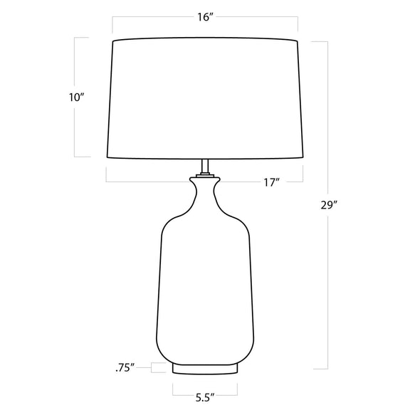 A specialized glazing technique is used to produce the luxurious natural hues of the Glace table lamp. The natural brass finished base serves as an elegant platform for the lamp's dramatic scale. A natural linen shade, shaped and rolled by hand, is topped with a round matching finial.