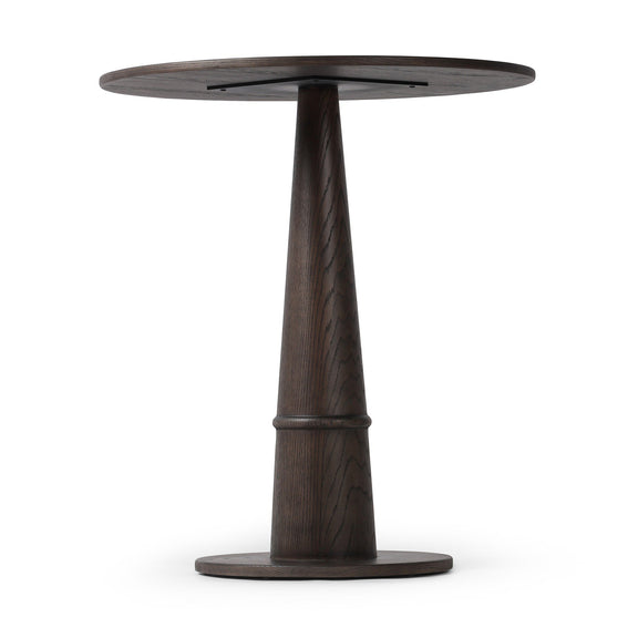For this fresh take on traditional tulip shaping, a solid oak base with ring detailing pairs with an oak veneer tabletop. Perfectly sized for the counter.