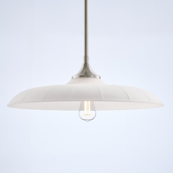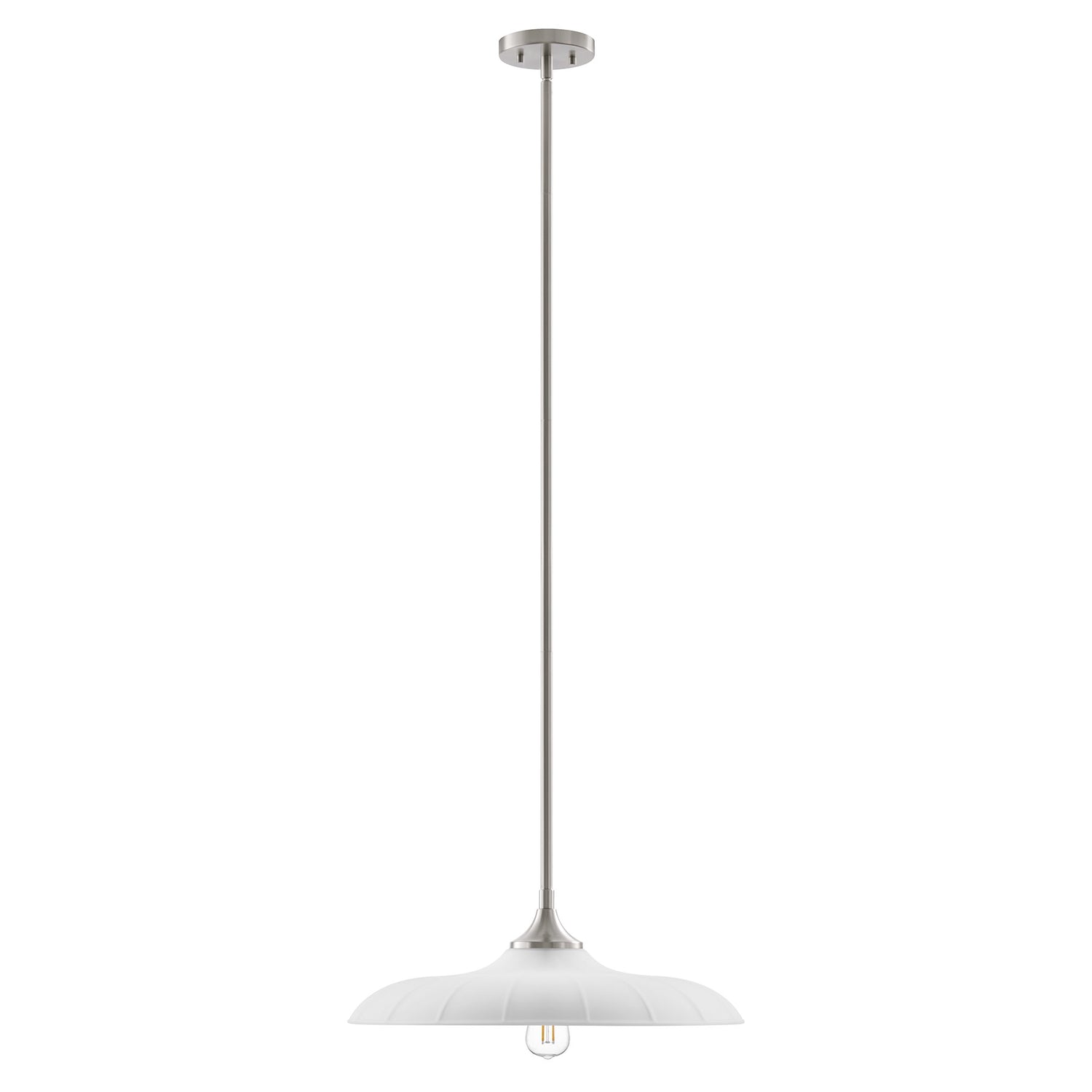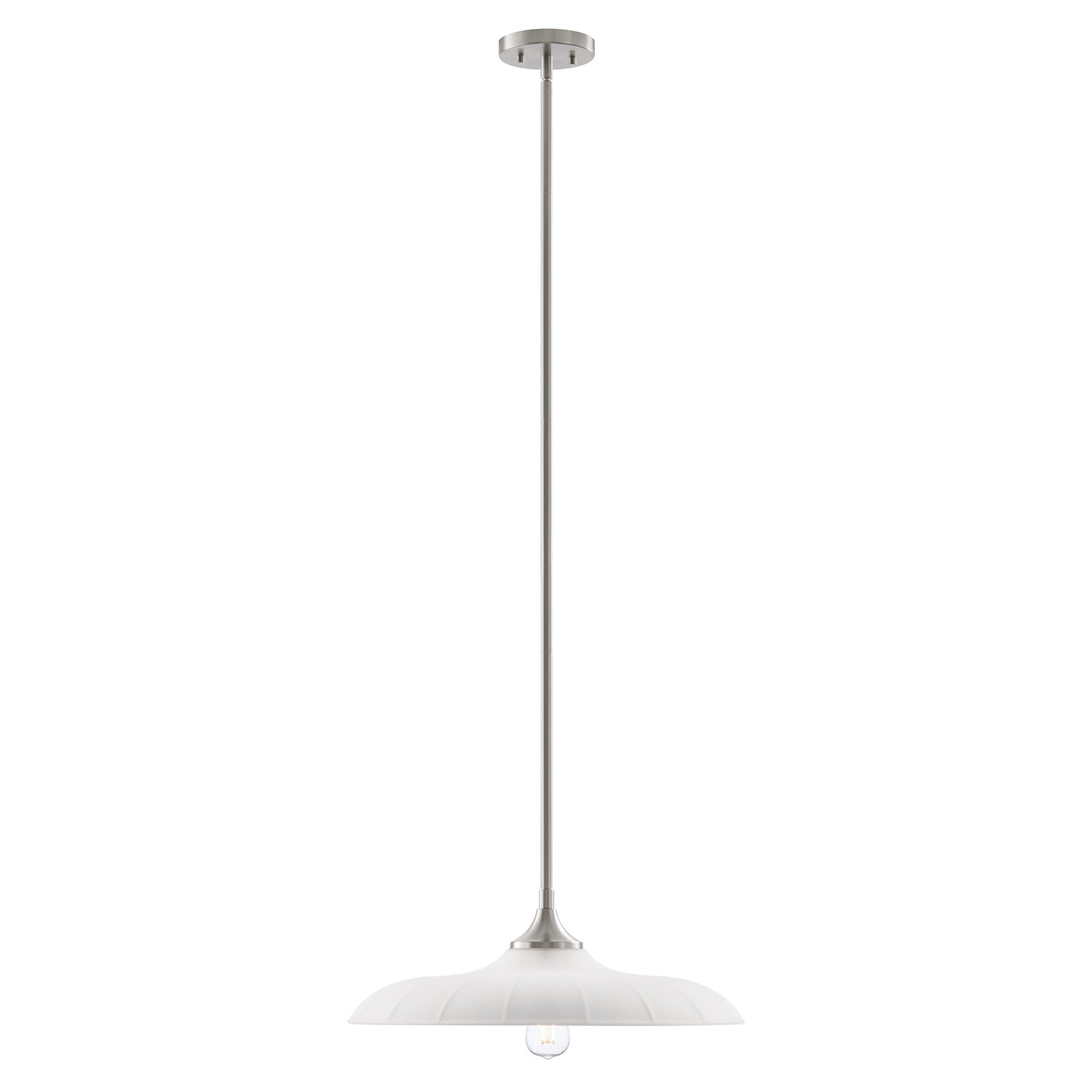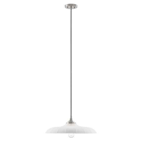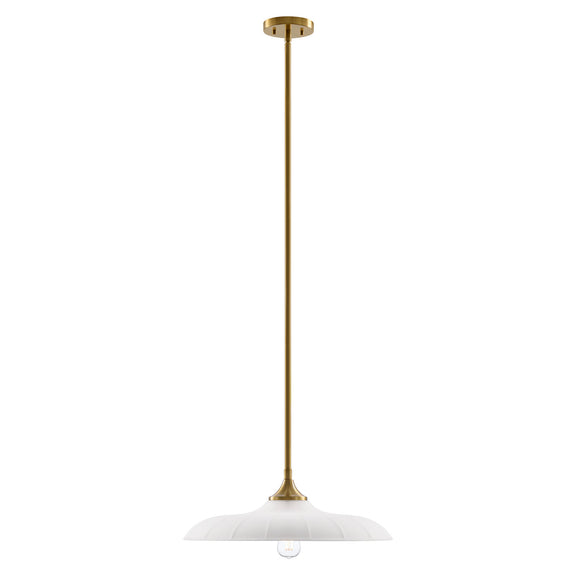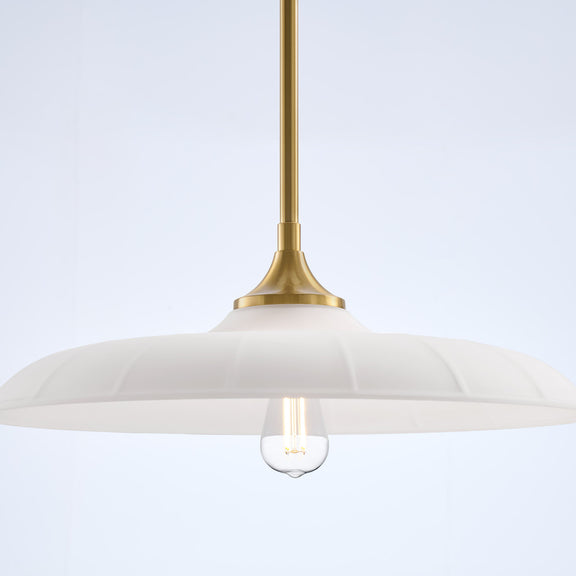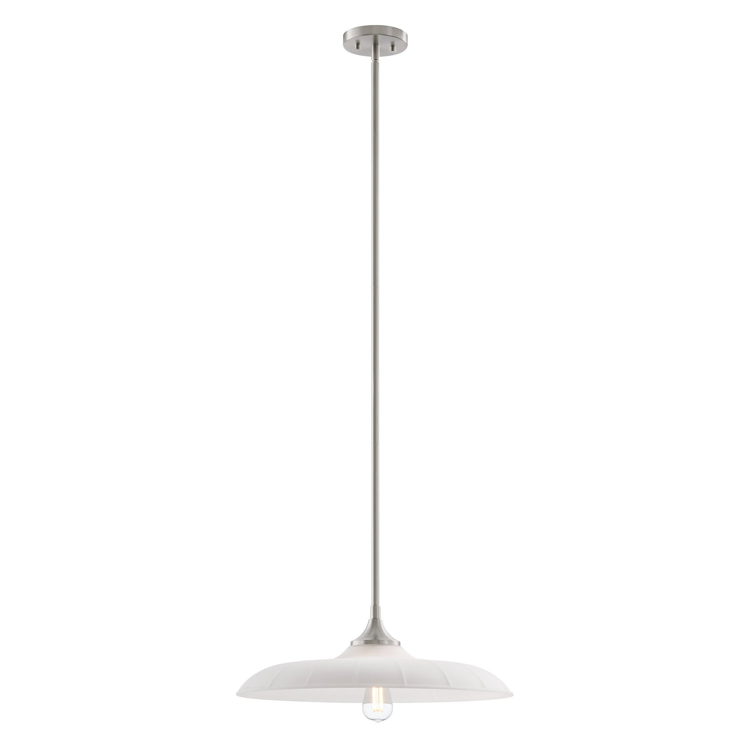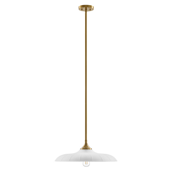 Welcome a look inspired by vintage workshop style with the Savoy House Hadley 1-light pendant. Its sleek, standout shade of subtly ribbed opal glass pairs beautifully with the Warm Brass finish. Use it solo or in groupings for a big boost of appeal! Hadley is 20" in width and has an adjustable height ranging from 6.63" to 60.63". It uses one standard size bulb of up to 60 watts. Bulb not included. Comes with four 12" downrods and one 6" downrod.
