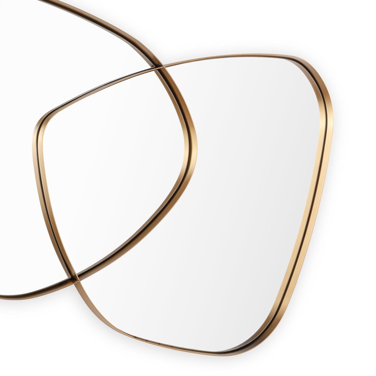The unique design of our Harmony Mirror catches the eye—especially with its natural brass finish. Its bold frame and overlapping shapes adds an edgy touch to any room.