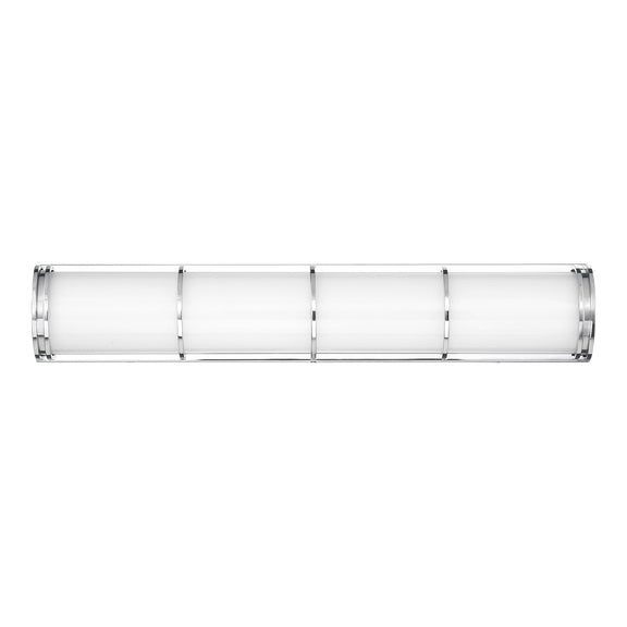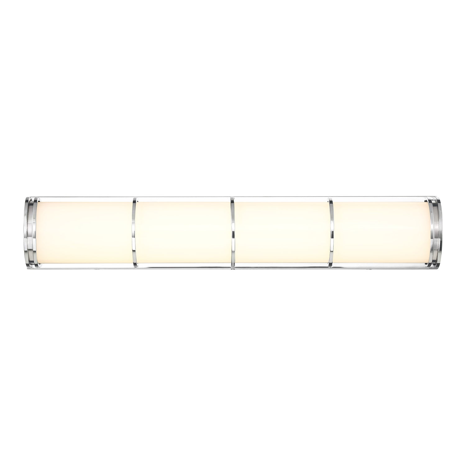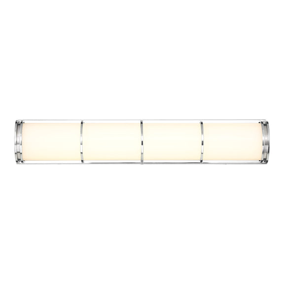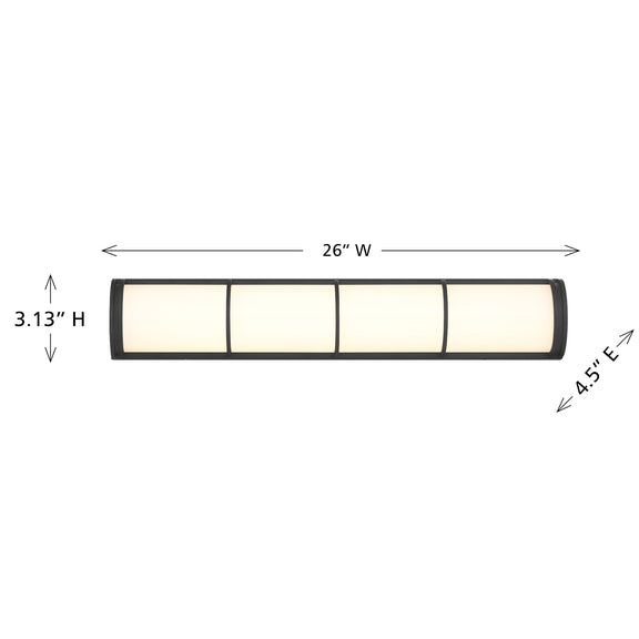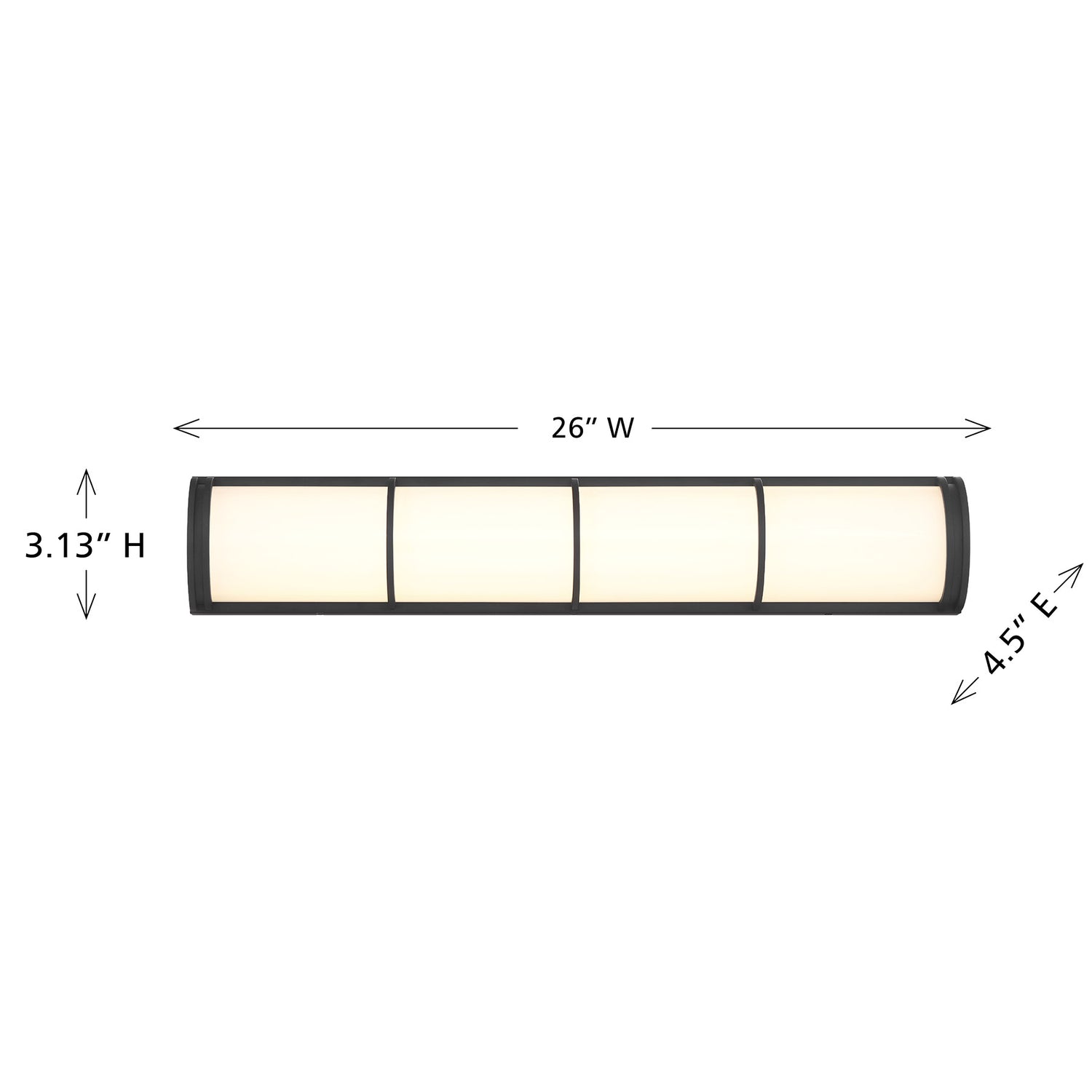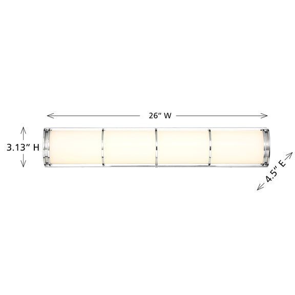This Savoy House Harper LED wall light has a super sleek and chic look that makes it an ideal solution for bathroom vanities, hallways, foyers or any other space that needs a big dose of bright, contemporary illumination. The etched white glass shade is accentuated by slim detailing that is finished in Warm Brass, creating a perfect pairing. Harper is 4.64" in height, 26" in width and extends 4.5" from the wall. It is illuminated by integrated LED light, giving off 2550 lumens at a CRI of 90 and a color temperature of 3000K.