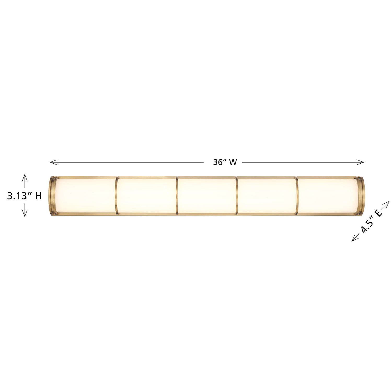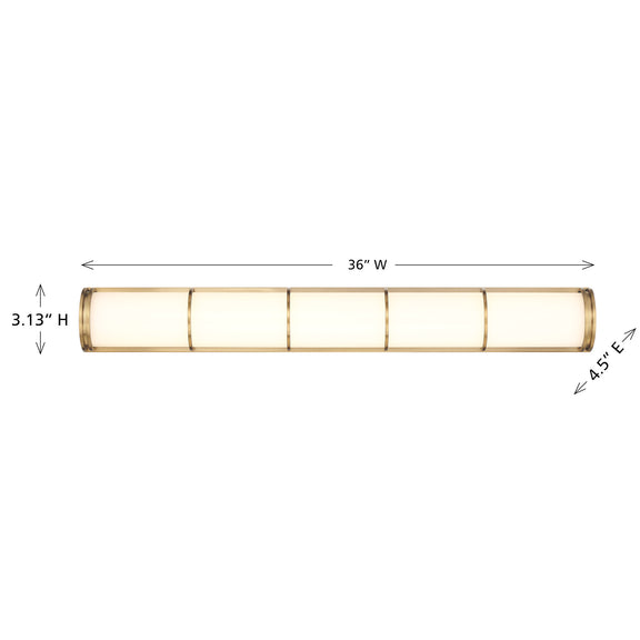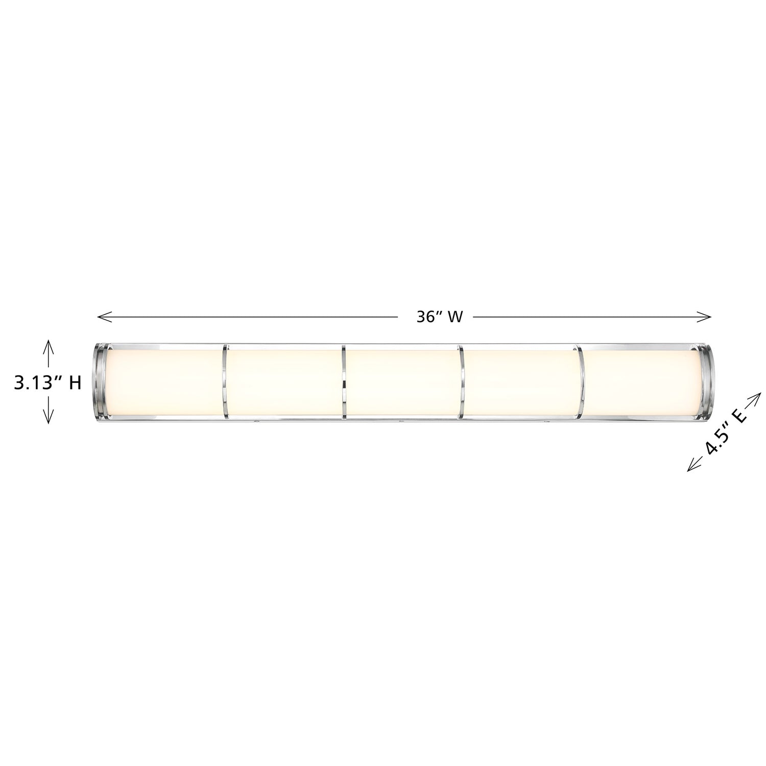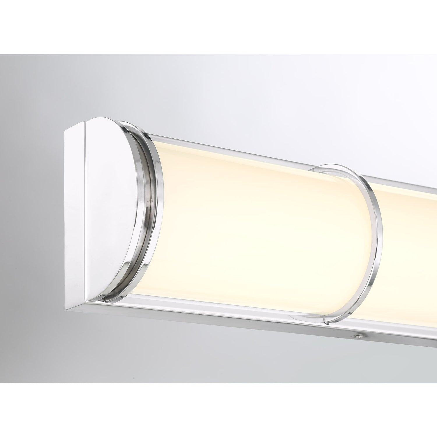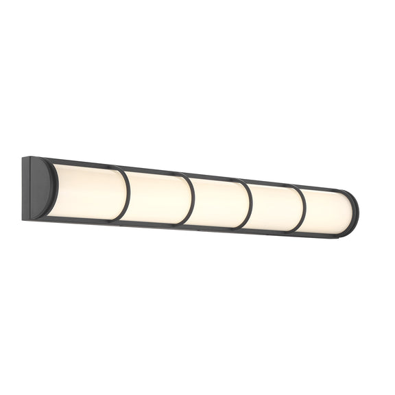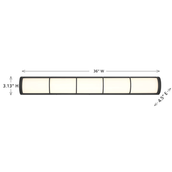 This Savoy House Harper LED wall light has a super sleek and chic look that makes it an ideal solution for bathroom vanities, hallways, foyers or any other space that needs a big dose of bright, contemporary illumination. The etched white glass shade is accentuated by slim detailing that is finished in Black, creating a perfect pairing. Harper is 4.64" in height, 36" in width and extends 4.5" from the wall. It is illuminated by integrated LED light, giving off 2700 lumens at a CRI of 90 and a color temperature of 3000K.