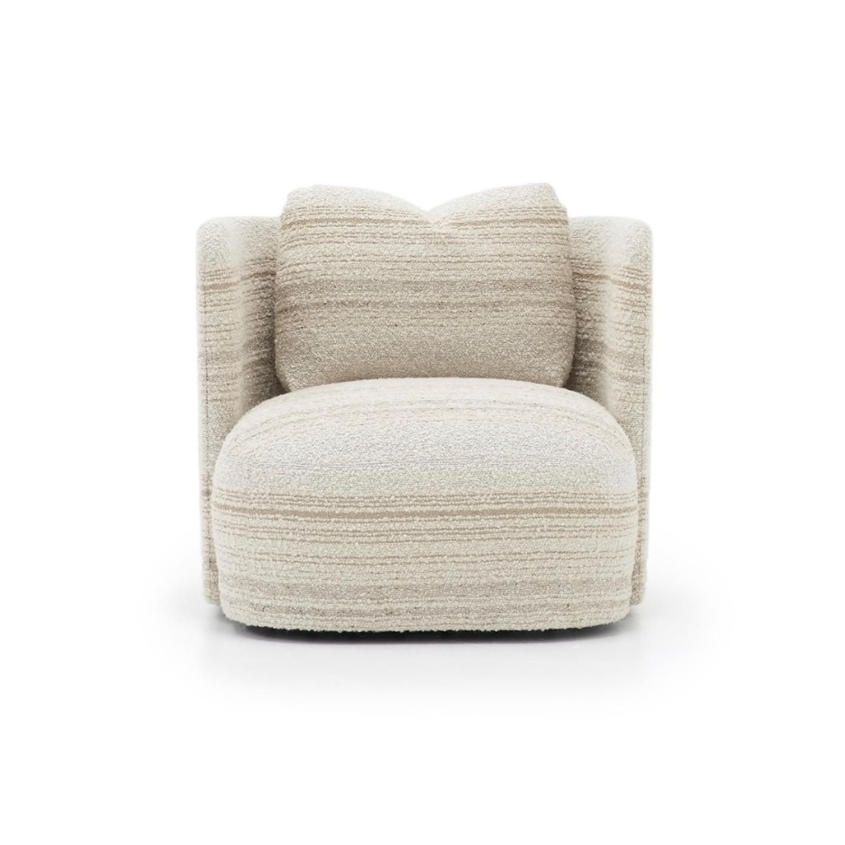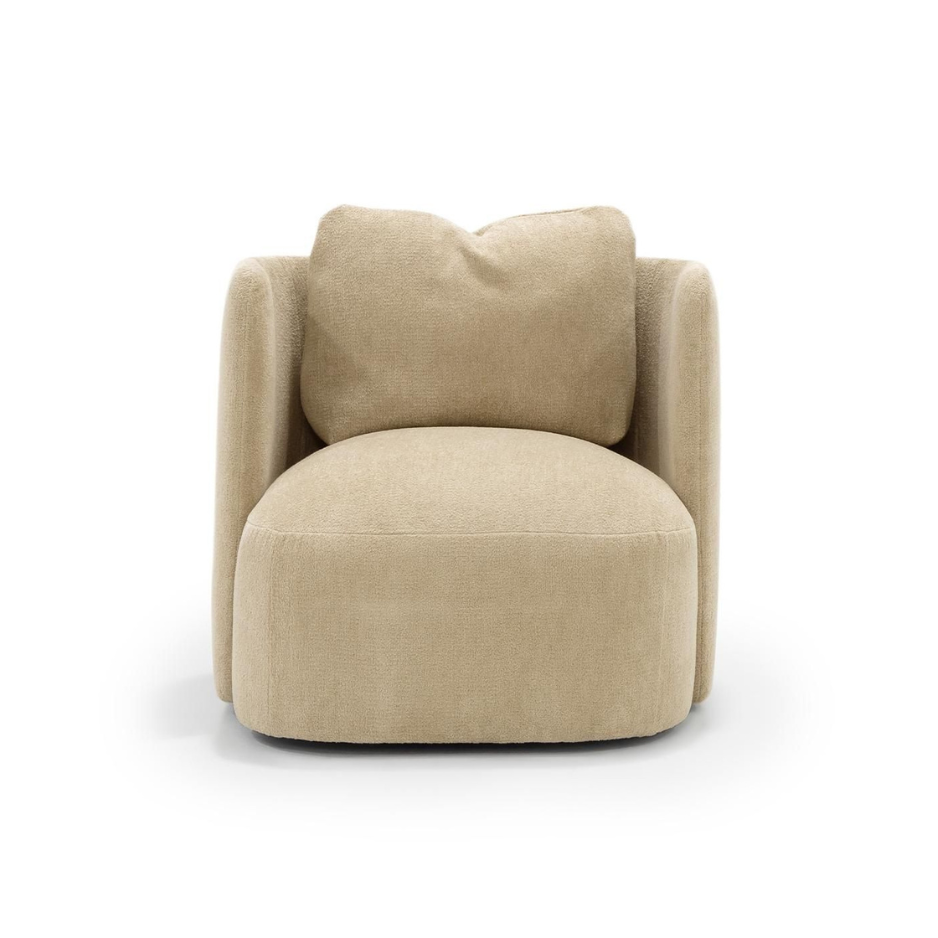 Extended shelter arms on a swivel base and an accent feature in the back, Hudson attracts with elegant shapes and extreme comfort.