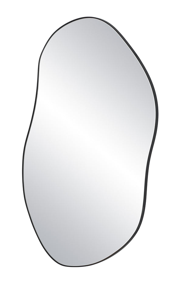 Step away from straight lines and try something new with the Jane mirror. It features a curvy organic form and a sleek matte black powder-coated frame to bring a light and airy feel to any room. Crystal clear mirror glass ensures a distortion-free reflection you can only get with high-quality mirrors. Measuring nearly 4 feet long, it makes for a great alternative to a standard full length mirror when hung vertically and would also look beautiful displayed horizontally as a focal point over a fireplace, sofa or dresser. The choice is up to you thanks to a 4-way hanging D-ring system that lets you hang it to suit your needs.
