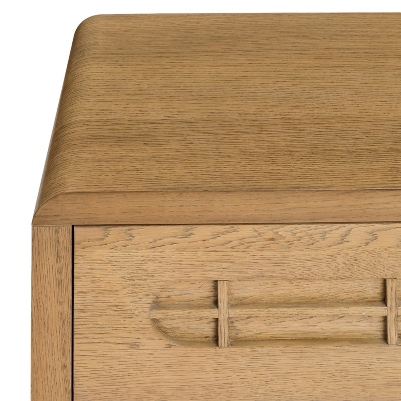 The Jesper nightstand is inspired from European mid-century design, with the vintage finish highlighting the natural grains of the oak wood.