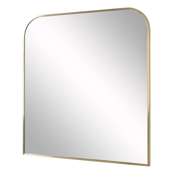 The optimal size to hang or rest above an entryway bench, sofa or dining table, this arch mirror provides homeowners with moments of reflection while brightening the space it's set within. The sleek antique brushed brass frame gives this mirror an aesthetic that fits within mid-century modern, classic and contemporary interiors. The unique curved angles of this framed mirror are inherently charming, and this charm radiates off to the accessories and fixtures in its midst.
