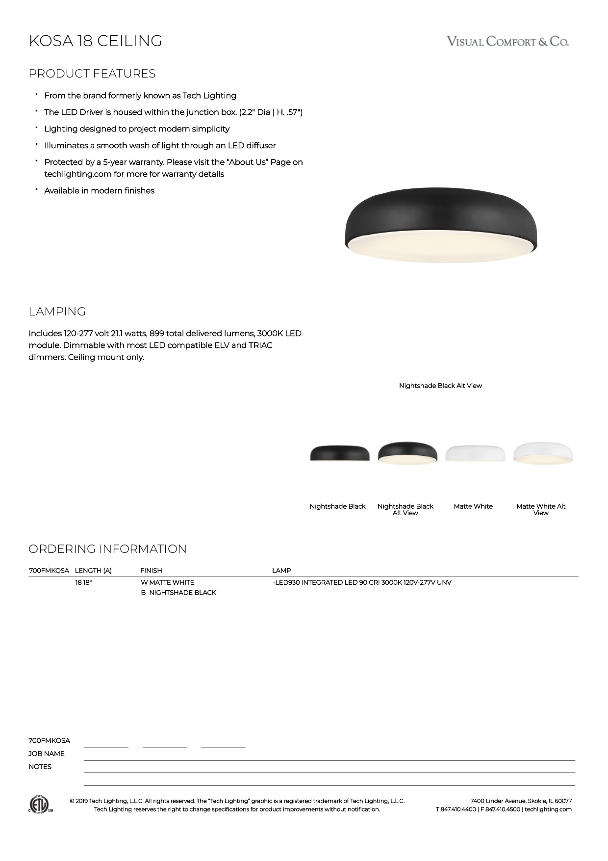 Kosa 18 Flush Mount by Sean Lavin is lighting designed to project modern simplicity. This dome-shaped flush mount illuminates a smooth wash of light through an LED diffuser and generously fills the surface below. Generously sized with an 18 inch diameter, the Kosa is a great complement to any room or hallway setting. Available in modern finishes.