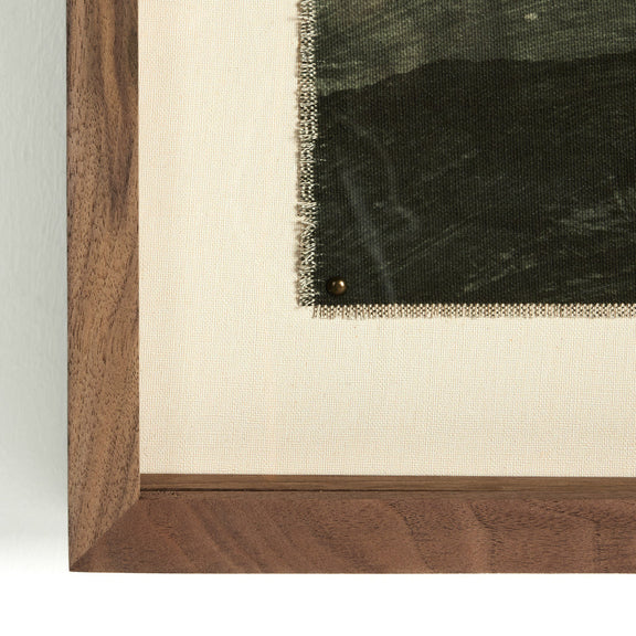 Artist Dan Hobday finds inspiration in the coastal landscapes of his hometown of Devon, England, crafting this muted abstract take on a sloping countryside scene. Handmade in Austin, Texas. A design collaboration by Amber Lewis and Four Hands.