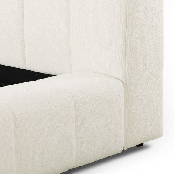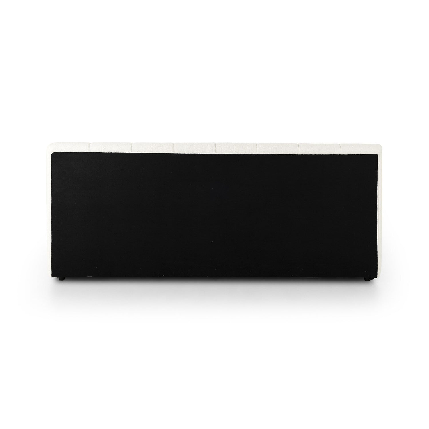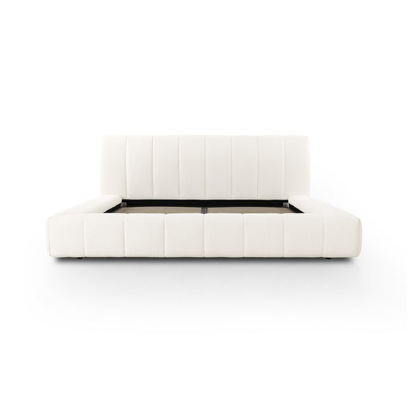 Wide, vertical channeling and low styling speak to the modish Italian influence of this softly textured bed upholstered in cream high-performance fabric. Performance fabrics are specially created to withstand spills, stains, high traffic and wear, ensuring long-term comfort and unmatched durability.