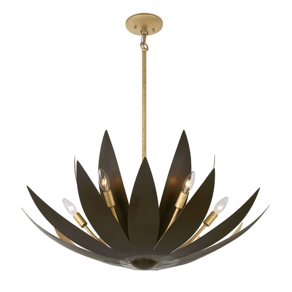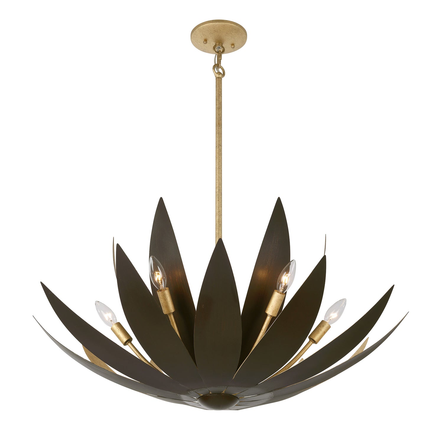 Bring in the beauty of nature with the Savoy House Loto 6-light pendant, which was designed by award-winning interior designer and TV host Breegan Jane. It is inspired by and named for the tranquil lotus flower, the iconic look represented here by softly unfurling petals finished in hand-applied Burnished Gold and Centura. Loto is 30" in width and has an adjustable height ranging from 17.13" to 71.13". It uses six candelabra size bulbs of up to 60 watts per bulb. Bulbs not included. Comes with four 12" downrods and one 6" downrod.