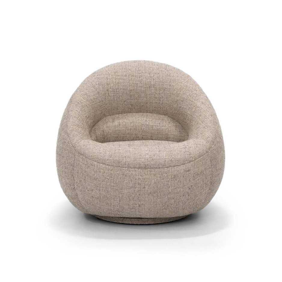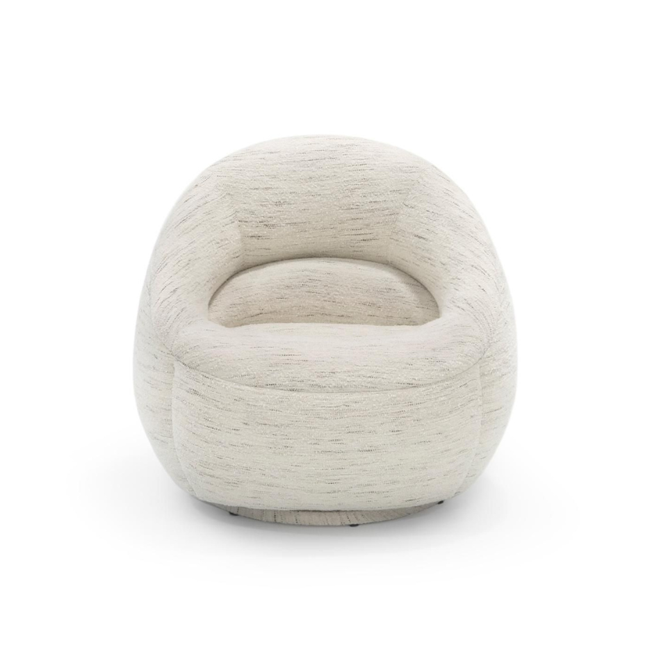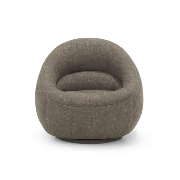 The soft and circular chair features tucks and boldness on a swivel. Micah is an accent piece that makes a statement for comfort.