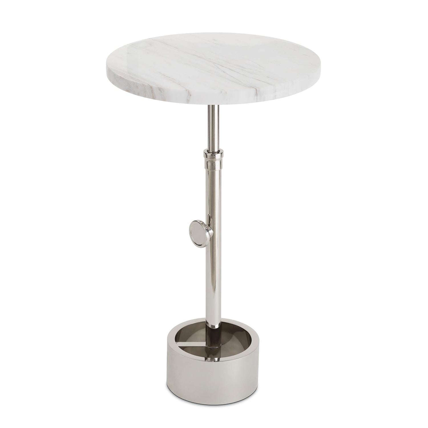 The Myles Accent Table fuses chunky, hardware-inspired elements with sleek modern marble. The table’s adjustable-height base plays on industrial style, while its marble top ties in classic elegance.