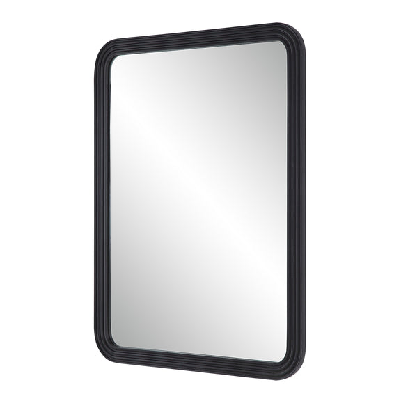Upgrade your interior with our Nolana 40 Tall Rectangular Mirror in textured matte black. Made with a sturdy MDF frame, this mirror is built to last and exudes a sleek, versatile design. The D-ring hanging system makes it easy to install, and with four-way hanging capabilities, it offers versatile display options to suit any interior. A perfect complement to any room decor, this mirror is a statement piece that enhances the aesthetic of your space. With its standout design and impressive functionality, this mirror is a must-have for anyone looking to bring a touch of elegance to their interior design.