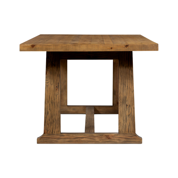 Bring a traditional sense to the table. Finished in a warm honey hue, a trestle-style base of solid pine supports a rectangular top of pine, waxed and bleached for a rustic look with natural depth. Mix in seating or pair with matching bench.
