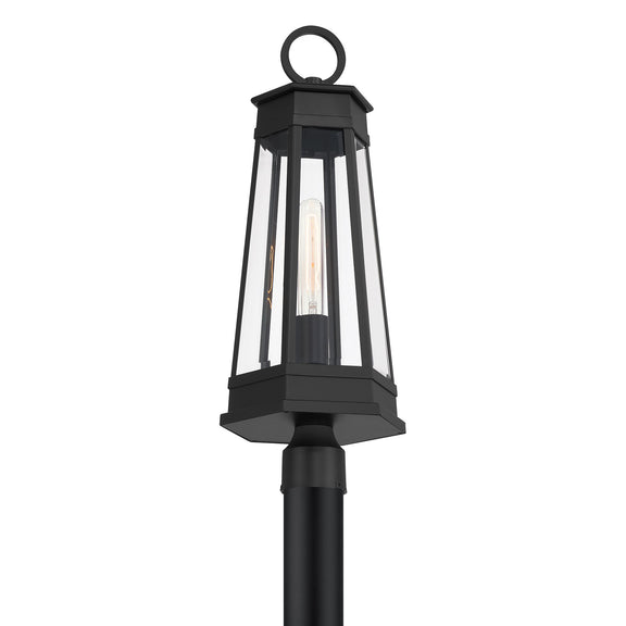 Light the way home with the terrific transitional style of the Savoy House Payne 1-light outdoor post light. It has standout style thanks to panes of clear beveled glass, thoughtful geometric detailing and a versatile Matte Black finish. Use it solo or in groupings to create a great first impression. Payne is 24.5" in height and 9.5" in width. Uses one standard size bulb of up to 60 watts. Bulb not included. Payne is wet area rated for use in covered or uncovered outdoor areas.