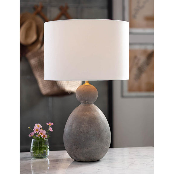 With its beautiful earthen tones, natural texture, and curves, the Playa was named for the broad, level spots of dessert that become dry and cracked from evaporation. A large, ceramic body covered in its uniquely organic glaze, undulates below a crisp natural linen drum shade. Perfect in a bedroom or living space, this table lamp is stunning both lit and unlit.