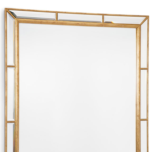 Strong yet graceful, this versatile beveled mirror reflects light and color beautifully. Beveled edges and gold trim elevate this rectangular mirror for a grand statement. Display it horizontally or vertically.