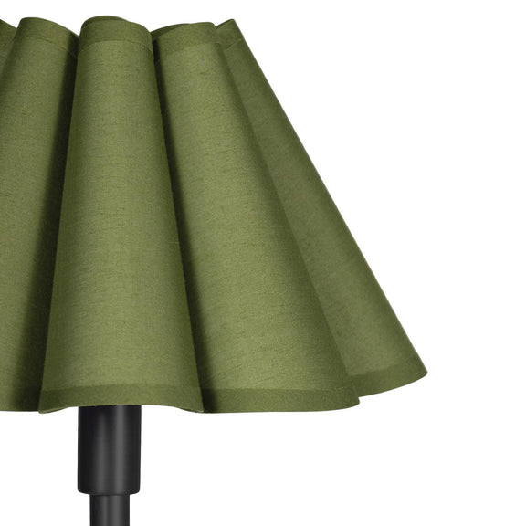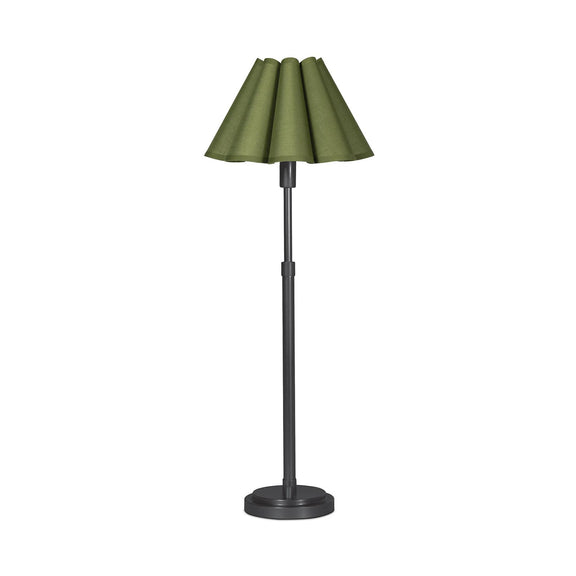 The Polly Buffet Table Lamp showcases sophistication with its single green scalloped shade, casting a warm and inviting glow that adds an elegant touch to your dining or side table with its rich, verdant hue. The lamp’s gracefully designed base combines classic charm with a modern touch, offering a beautifully versatile piece that enhances any room with its refined and stylish accent.