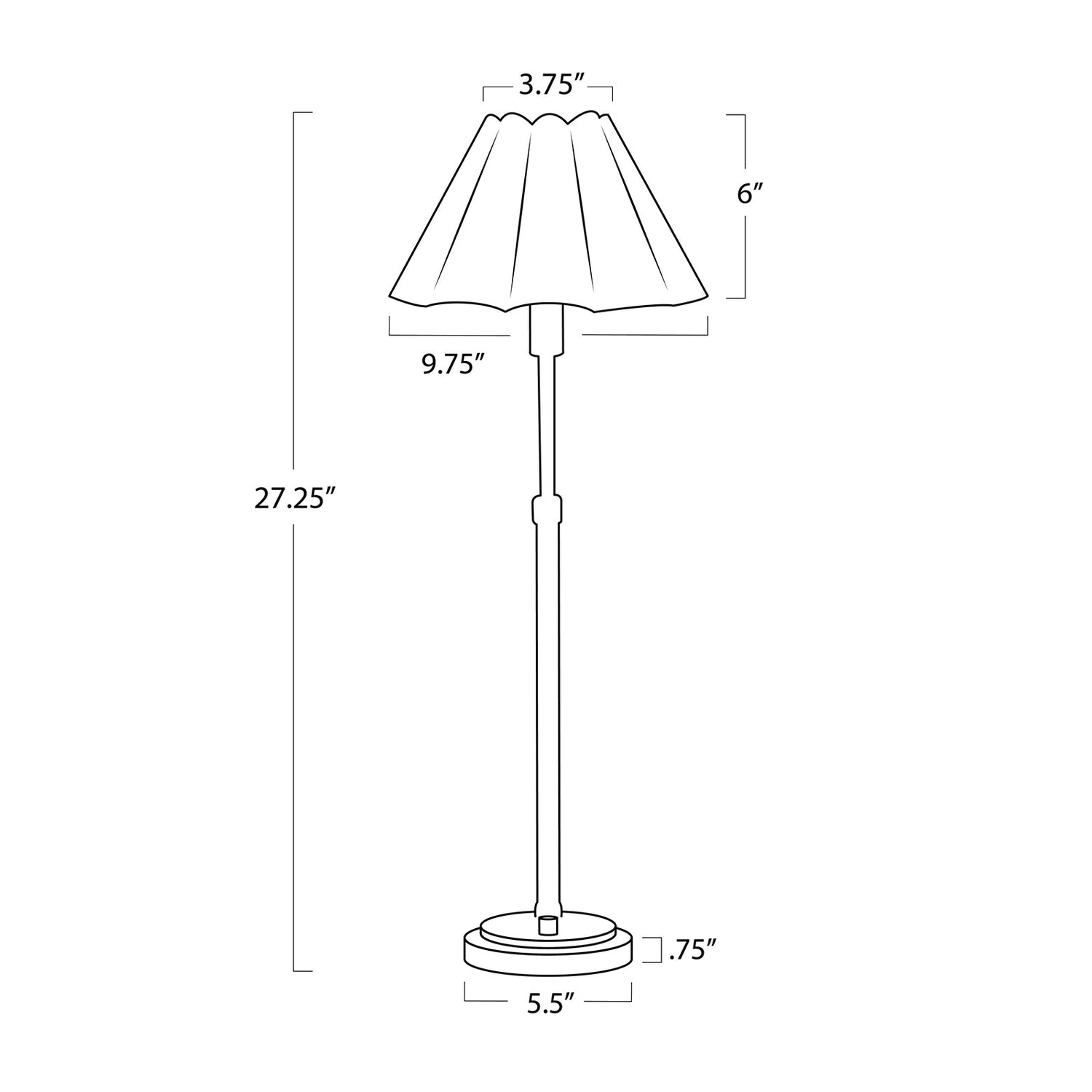 The Polly Buffet Table Lamp showcases sophistication with its single white scalloped shade, casting a warm and inviting glow that enhances your dining or side table with its crisp, clean hue. The lamp’s gracefully designed base combines classic charm with a modern touch, offering a beautifully versatile piece that adds a refined and stylish accent to any room.