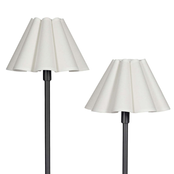 An imaginative twist on a classic style, the Polly Double Arm Table Lamp reaches upward with twin scalloped shades in a rich, verdant hue that provides the perfect glow for reading or meaningful conversation. With varied heights in slim, blackened brass, the lamp strikes a perfect balance between classic and modern to add an airy and unexpected elegance to your space.