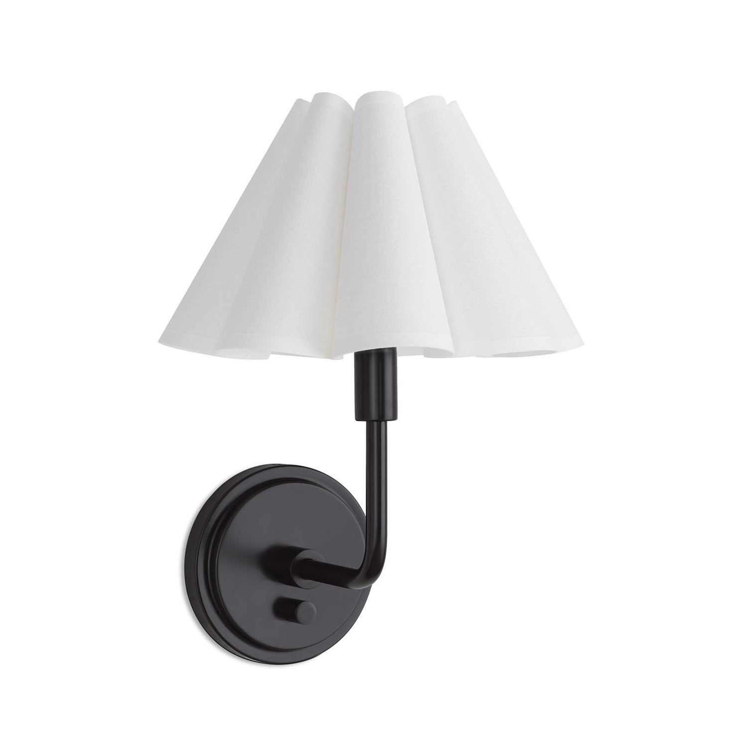 The Polly Wall Sconce brings an air of refined elegance with its single white scalloped shade, casting a warm and comforting glow on any wall and brightening the space with its crisp, clean hue. The gently curved arm adds a touch of classic sophistication, blending seamlessly with both modern and traditional styles to enhance any space with grace and style.