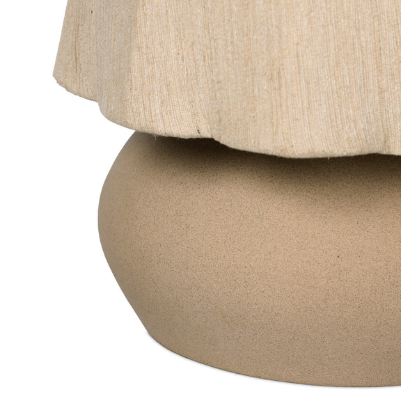 A large ceramic base with a speckled glossy finish supports a scalloped pure silk shade with fluid curves — a look that's instantly soft and bold.