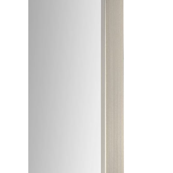 Simplicity at its finest, this mirror with a satin nickel plated-iron frame is free of embellishment but never dull. Providing endless versatility for placement within the home, it serves one well in the bathroom, living room, bedroom, or entryway. THis mirror allows a room to expand within its reflection.