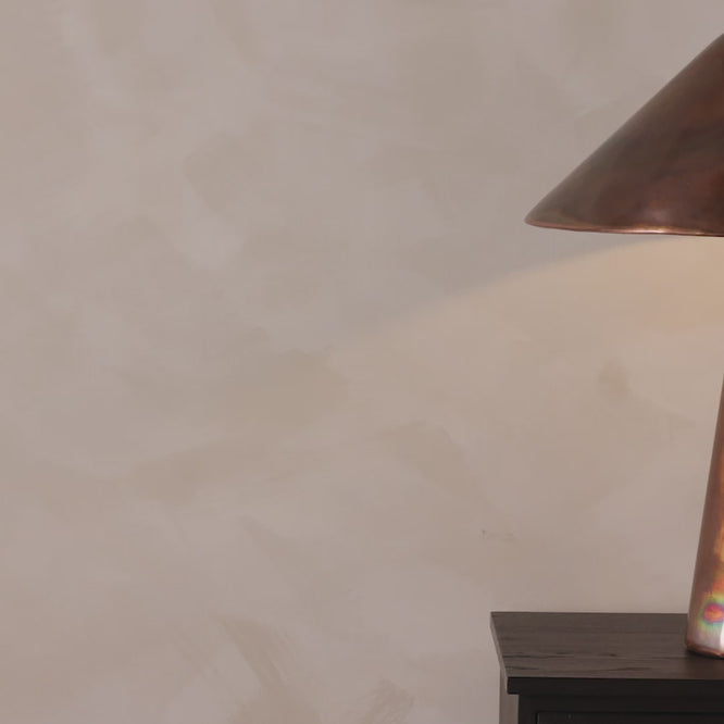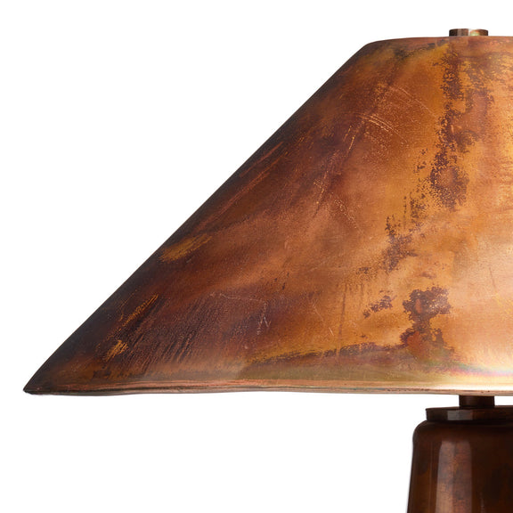 With a burnished, iridescent finish from top to bottom, this gleaming table lamp has a standout presence that makes any room shine.
